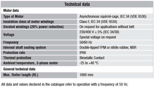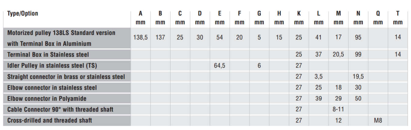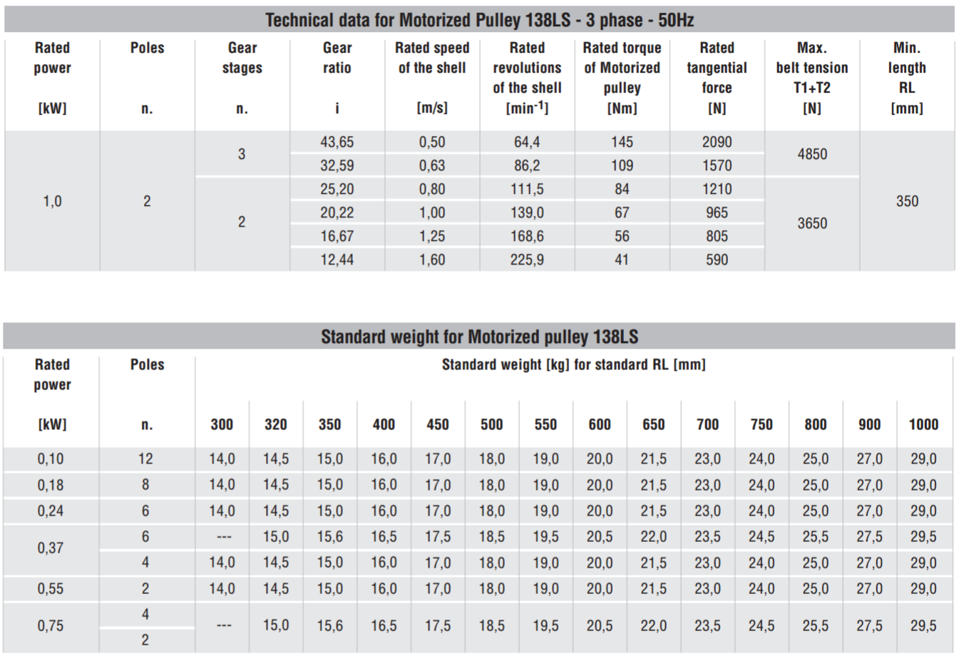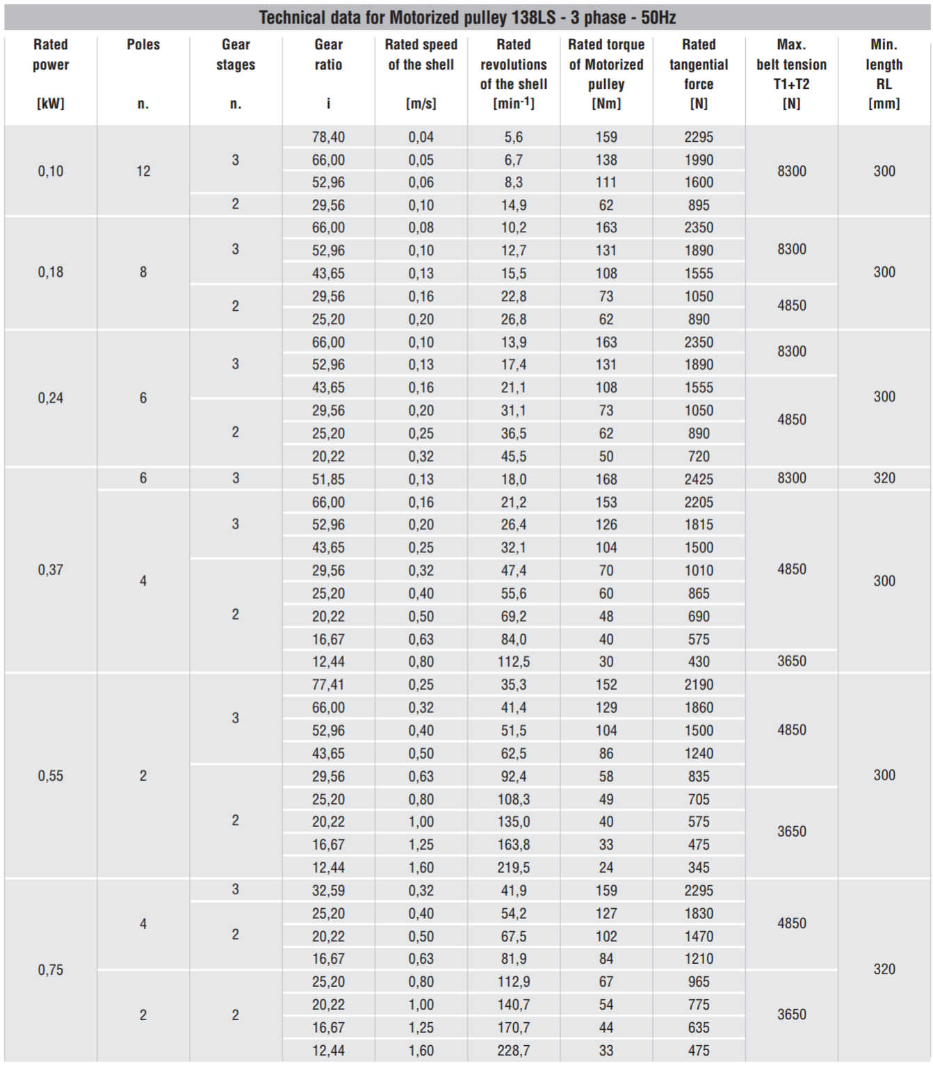 The motorized pulley 138LS is a very flexible component thanks to the wide range of powers and speeds.